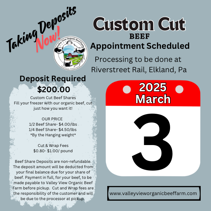 $4.50/lbs hanging weight for the Beef. Estimated $1.00/lbs hanging for Cut&wrap fees